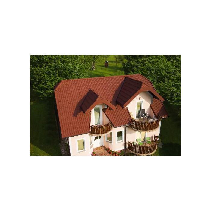 Композитная черепица Gerard Diamant, 1270x398мм, burgundy это новейшее решение для кровли, сочетающее в себе прочность, эстетику и простоту монтажа. Она состоит из строго геометрических элементов, которые индивидуально соединяются между собой. композитная черепица доступна в разнообразных цветах и стилях, позволяя подобрать такую, которая идеально сочетается с архитектурой дома.