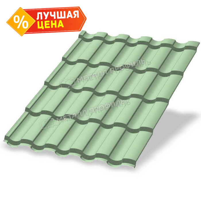 Металлочерепица Металл-Профиль Монтекристо-S 0,5 NormanMP RAL 6019 Зеленая пастель
