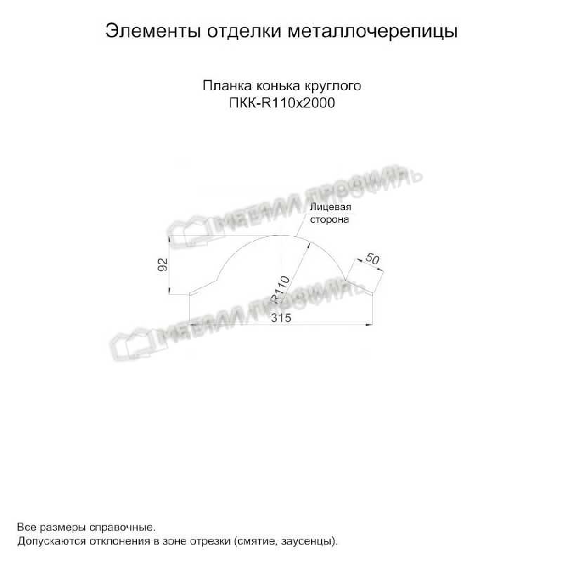 Планка конька круглого R110х2000 (ПЭ-01-8017-0.45)