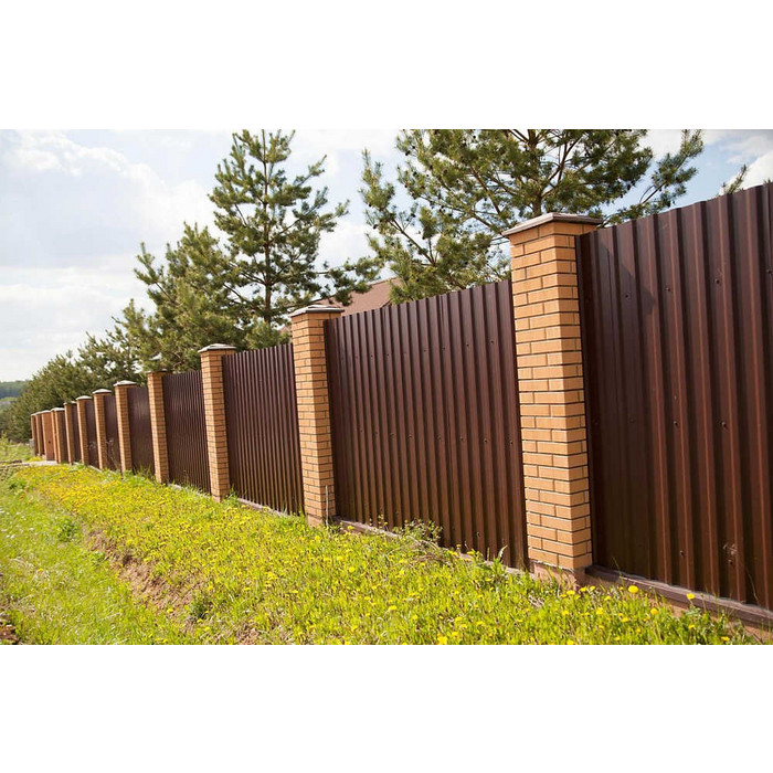 Профиль МП-20 имеет толщину 0,45 мм, что обеспечивает надежность и долговечность конструкции. Полиэстеровое покрытие RAL 8017 придает материалу красивый коричневый цвет, напоминающий шоколад.