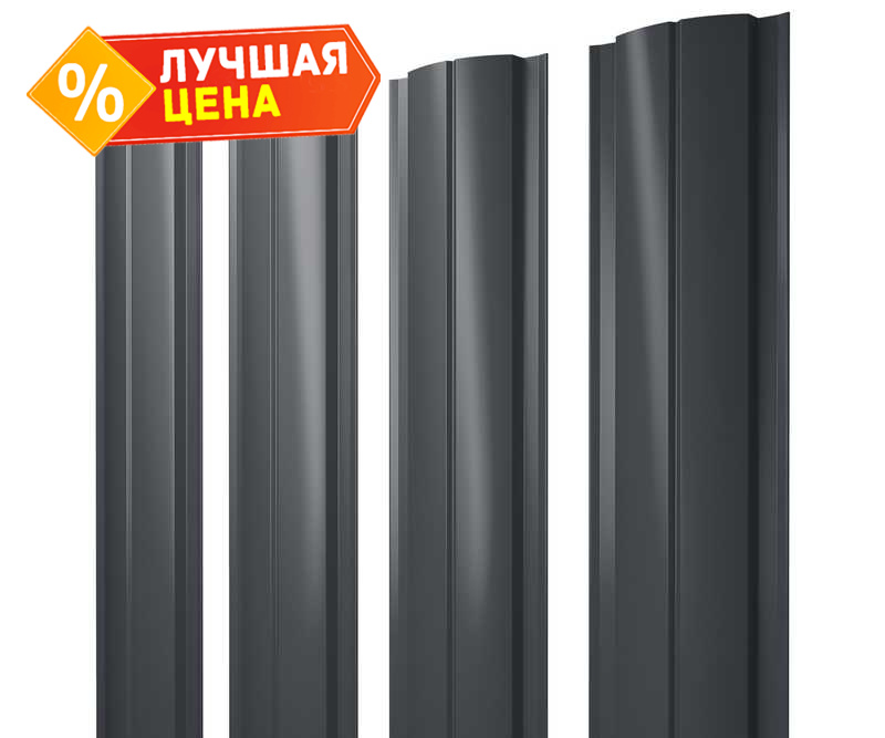 Штакетник Полукруглый Slim Grand Line 0,4 Полиэстер матовый - double RAL7024 Мокрый Асфальт